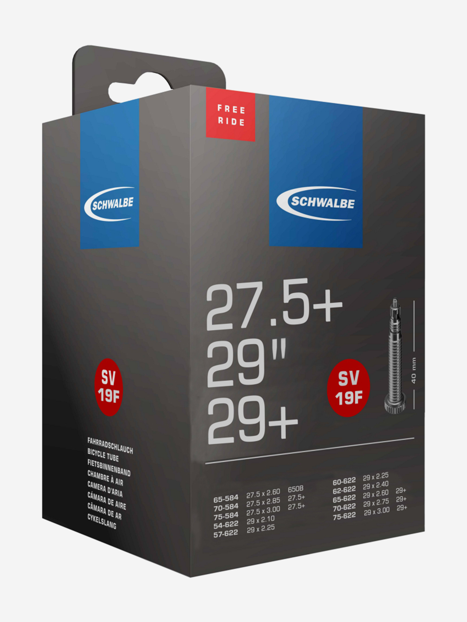 Камера Schwalbe SV19 F Freeride 27.5-29'', велониппель, Черный