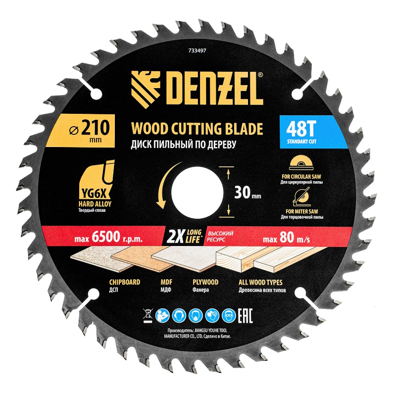 Пильный диск по дереву Denzel 733497, ф210 х 30 мм, 48 зубьев