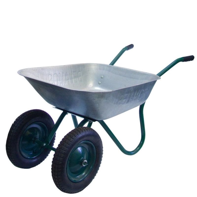 Садовая двухколесная тачка Belamos предназначена для работы в саду и огороде, перевозки листьев, компоста, земли, в ЖКХ и при работах по озеленению. Легкая, устойчивая и маневренная, с большими надувными колесамиПреимущества Два колеса для большей устойчивости Пневматические колеса большого диаметра (380 мм) обеспечивают легкость хода даже по неровной поверхности Качественная оцинковка кузова Кузов тачки имеет трапецевидное строение с плоским днищем квадратной формы Расстояние между колесами менее 50 см, что позволяет легко двигаться по садовым дорожкам