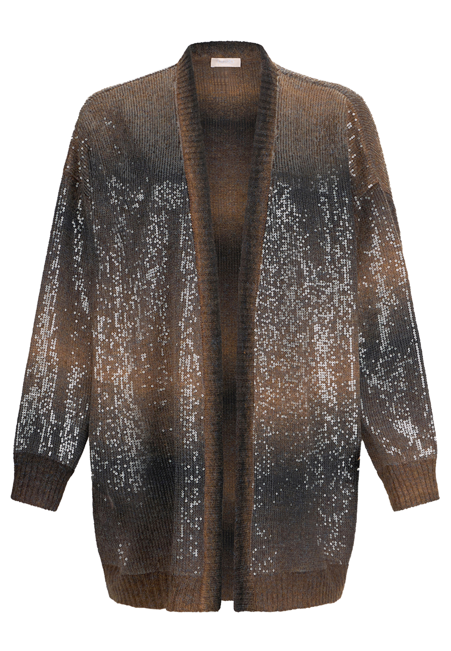Эффектный кардиган от Liu Jo из мягкой смесовой шерсти с роскошной сплошной вышивкой пайетками — это воплощение стиля и элегантности. Удлиненный фасон подчёркивает женственный силуэт, добавляя образу особого шика. Изготовленный из смесовой пряжи, он обеспечит тепло и уют в прохладные дни, а блестящая отделка придаёт ему праздничный вид, делая его незаменимым для торжественных мероприятий. Переливающийся коричневый оттенок и свободный крой позволяют изделию стать универсальной деталью гардероба, которую можно сочетать с повседневной одеждой для создания стильного образа, а также с вечерним костюмом для элегантного выхода в свет. Благодаря сочетанию комфорта и изысканности, этот кардиган станет фаворитом тех, кто ценит моду и качество.