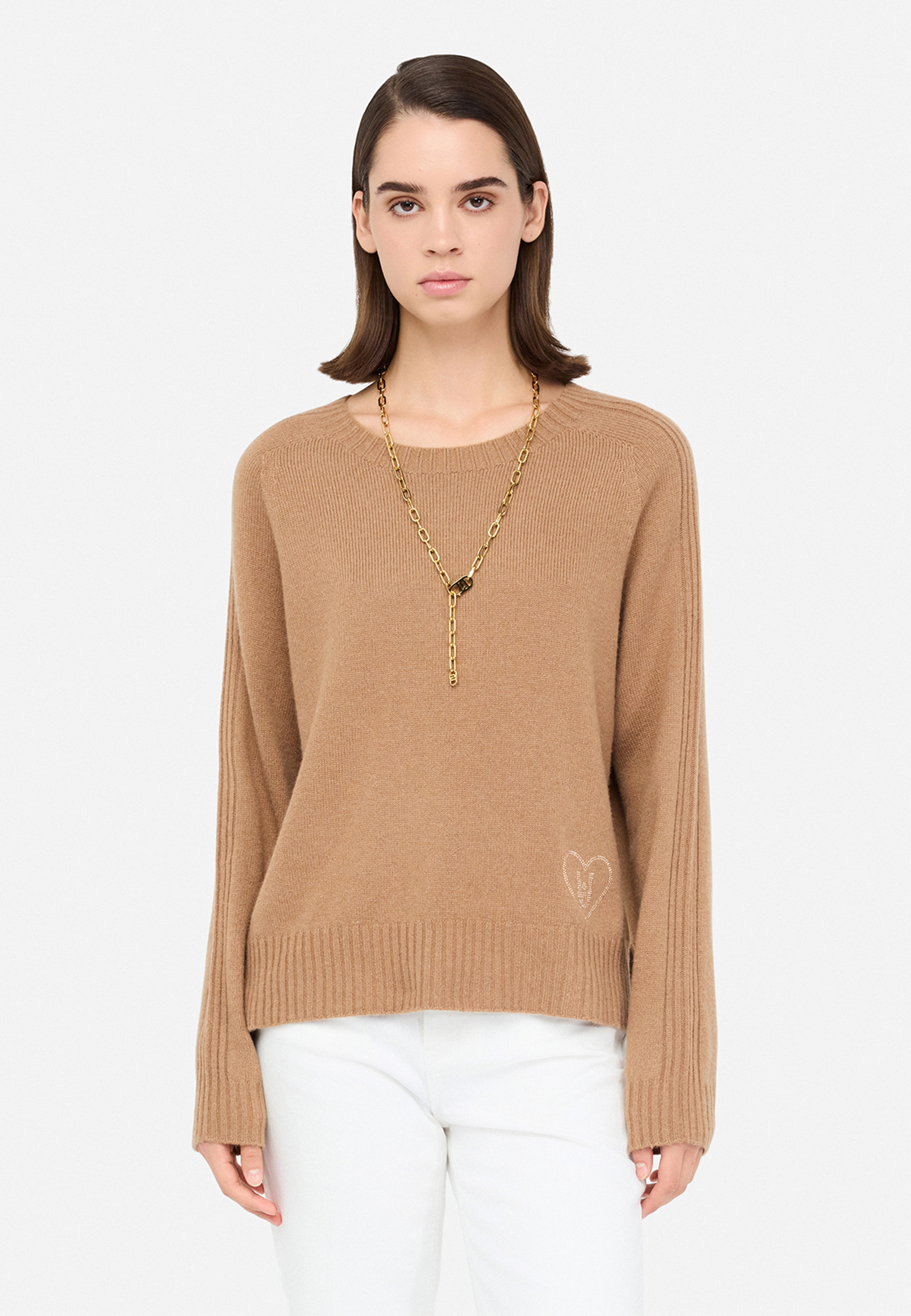 Джемпер с круглым вырезом в изысканном ореховом оттенке от Liu Jo — это сочетание стиля и комфорта, которое станет прекрасным дополнением вашего гардероба. Изделие выполнено из смесовой пряжи, сочетающей шерсть, вискозу и кашемир, благодаря чему джемпер обладает нежной текстурой и обеспечивает приятное ощущение на коже, идеально подходя для прохладной погоды. Ореховый цвет придаёт модели универсальность, позволяя легко комбинировать её с другими элементами одежды. Завершающим штрихом служит фирменный логотип Liu Jo, искусно интегрированный в декоративное вышитое сердце внизу изделия, добавляя индивидуальности и изюминки. Этот джемпер станет базовым элементом образа, отличающимся как практичностью, так и утончённым стилем, и подчеркнёт ваш изысканный вкус и внимание к деталям.