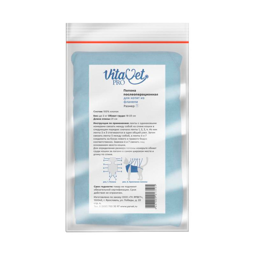 VitaVet Попона фланелевая послеоперационная для котят до 2 кг, 21х18-23 см, цвет в ассортименте