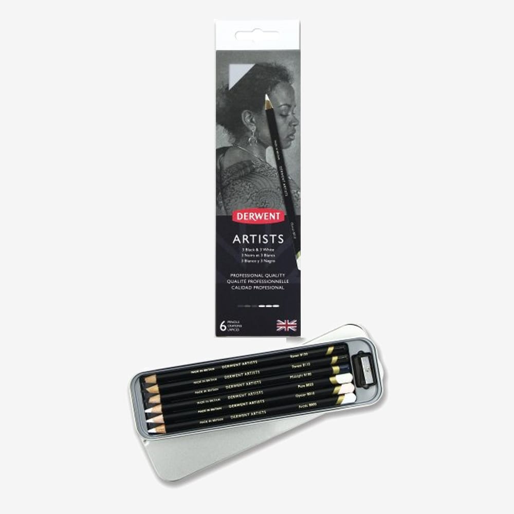 Набор карандашей цветные Derwent "Artist" чёрные и белые, 6 шт