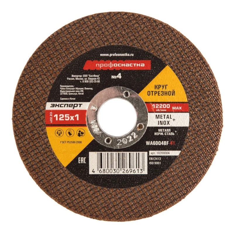 Круг отрезной Профоснастка Эксперт 10200004, по мет/нерж, № 04, 125*1*22 мм, тип 41