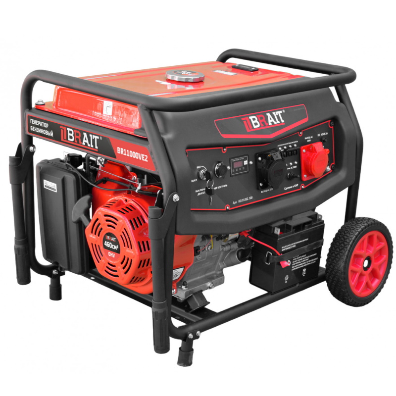 Генератор бензиновый Brait BR11000VE2, 8.0/8.5 кВт, 380/220В, перек. режим, 50Гц, 18 л.с., дисплей, электрический стартер, медная обмотка, DUPLEX