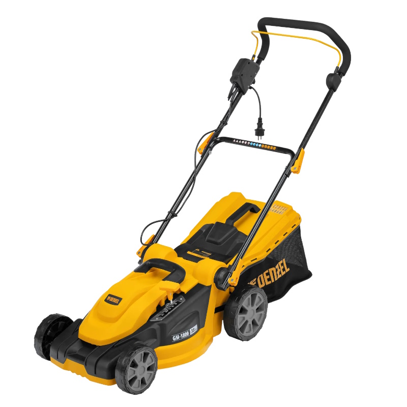 Электрическая газонокосилка Denzel мощностью 1800 Вт, с травосборником объемом 35 л, обеспечивает ширину скашивания 38 см и позволяет регулировать высоту скашивания — предусмотрено 6 уровней. Предназначена для ухода за газоном и садом, оптимальна для бытового применения. Можно выбрать тип травяного покрытия, установив 1 из 6 уровней высоты в диапазоне от 25 до 75 мм. Газонокосилка пригодится владельцам небольших дачных участков.Преимущества2 режима работы — возможен сбор скошенной травы в травосборник или мульчирование (измельчение и распределение по газону для последующего удобрения почвы).Безопасность — производитель предусмотрел функцию блокировки случайного запуска.Удобное использование — высота скашивания регулируется при помощи одного рычага.Контроль заполненности травосборника — когда он пуст, флажок указателя поднимается или колеблется, когда полон — индикатор неподвижен.Простое обслуживание — комбинированный травосборник удобно перемещать и опустошать.Защита двигателя — в случае срабатывания защиты от перегрева работа косилка останавливается для предотвращения поломки.Эргономичность — высота рукоятки регулируется, можно установить наиболее комфортную в соответствии с ростом пользователя.Комфортная транспортировка — газонокосилку удобно перемещать при помощи специальной рукоятки.Гарантия 3 года — высокое качество газонокосилки подтверждено производителем.
