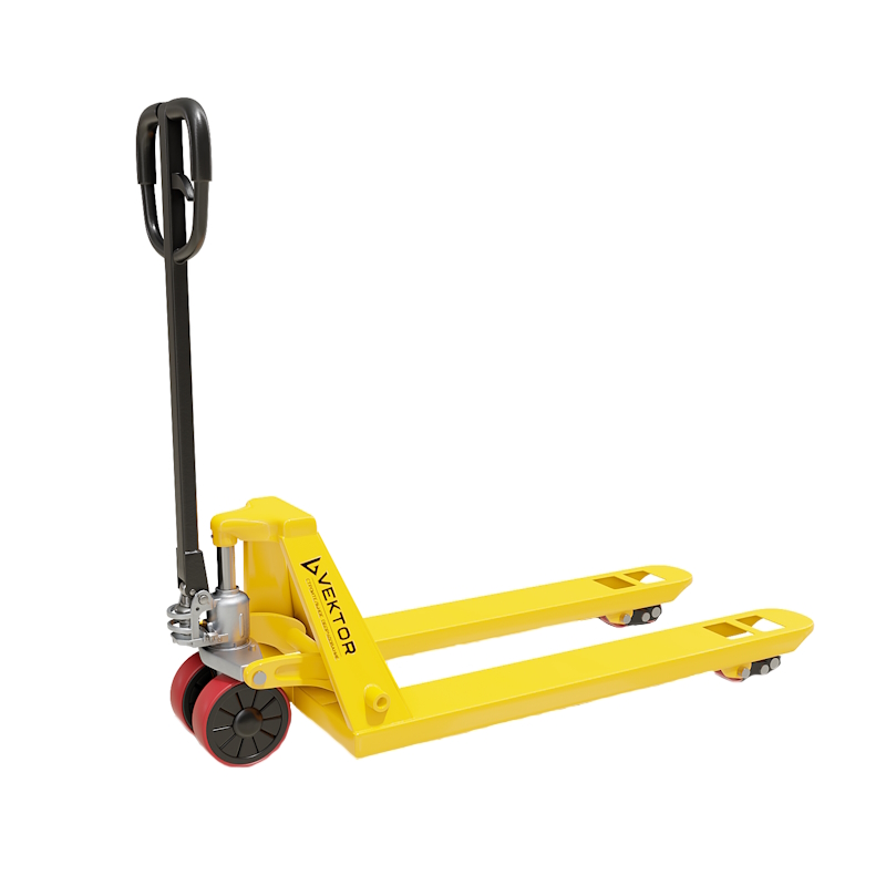 Гидравлическая тележка (рохля) Vektor 30/115 PU подходит для перемещения грузов на поддонах массой до 3тонн. Повсеместно используется на складах, на производствах, на фабриках, в магазинах.Рохля представляет собой металлическое основание с двумя вилами и ручкой управленияПреимущества Общая ширина вил — 55 см, а длина — 115 см, поэтому вы сможете перемещать грузы, установленные на большинство видов паллет Гидравлический насос, встроенный между основанием и ручкой, отвечает за плавный подъем и спуск груза На верхней части ручки есть рычаг, с которым тележка переключается в режимы подъема, спуска и движения Ведущие колеса тележки изготовлены из полиуретана, они подходят для эксплуатации на ровной поверхности