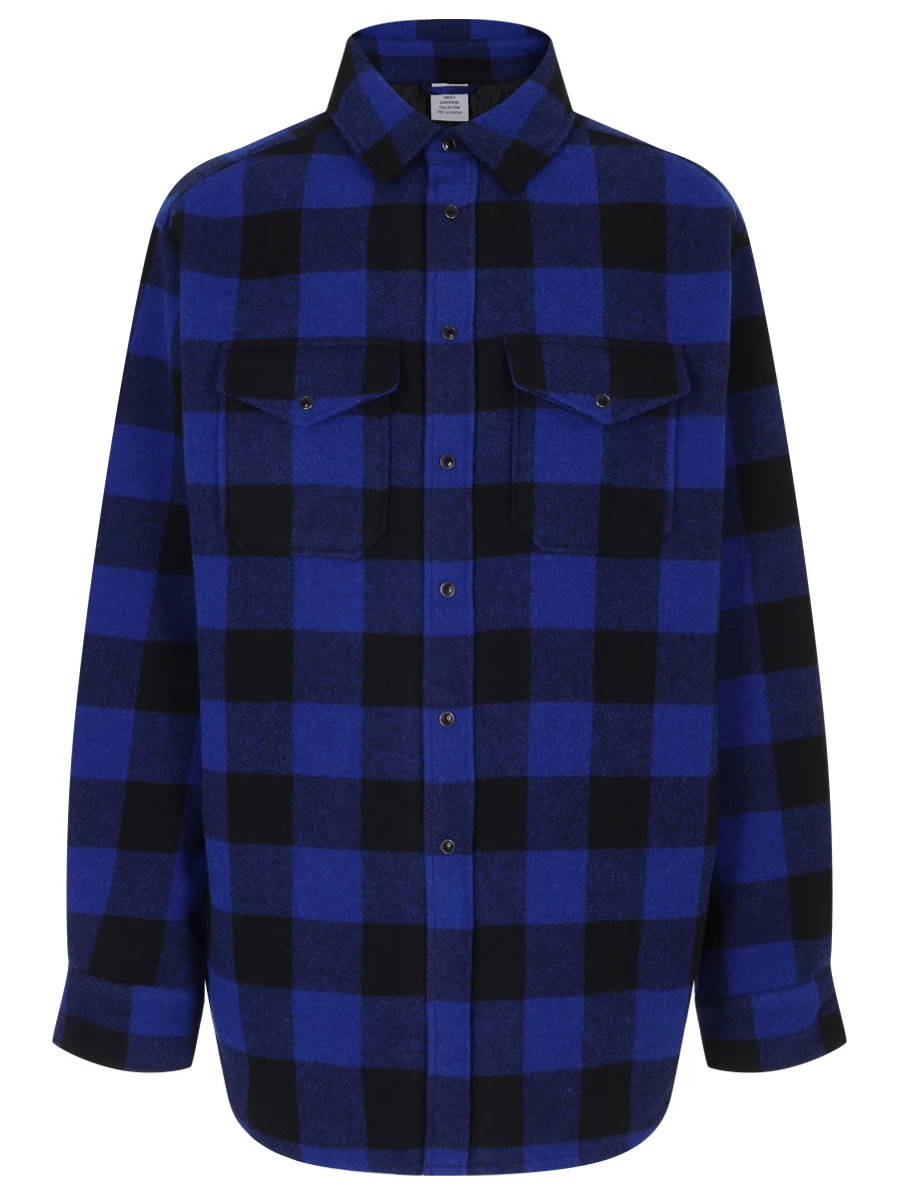 -Синяя клетчатая рубашка-оверсайз из шерсти от VETEMENTS.