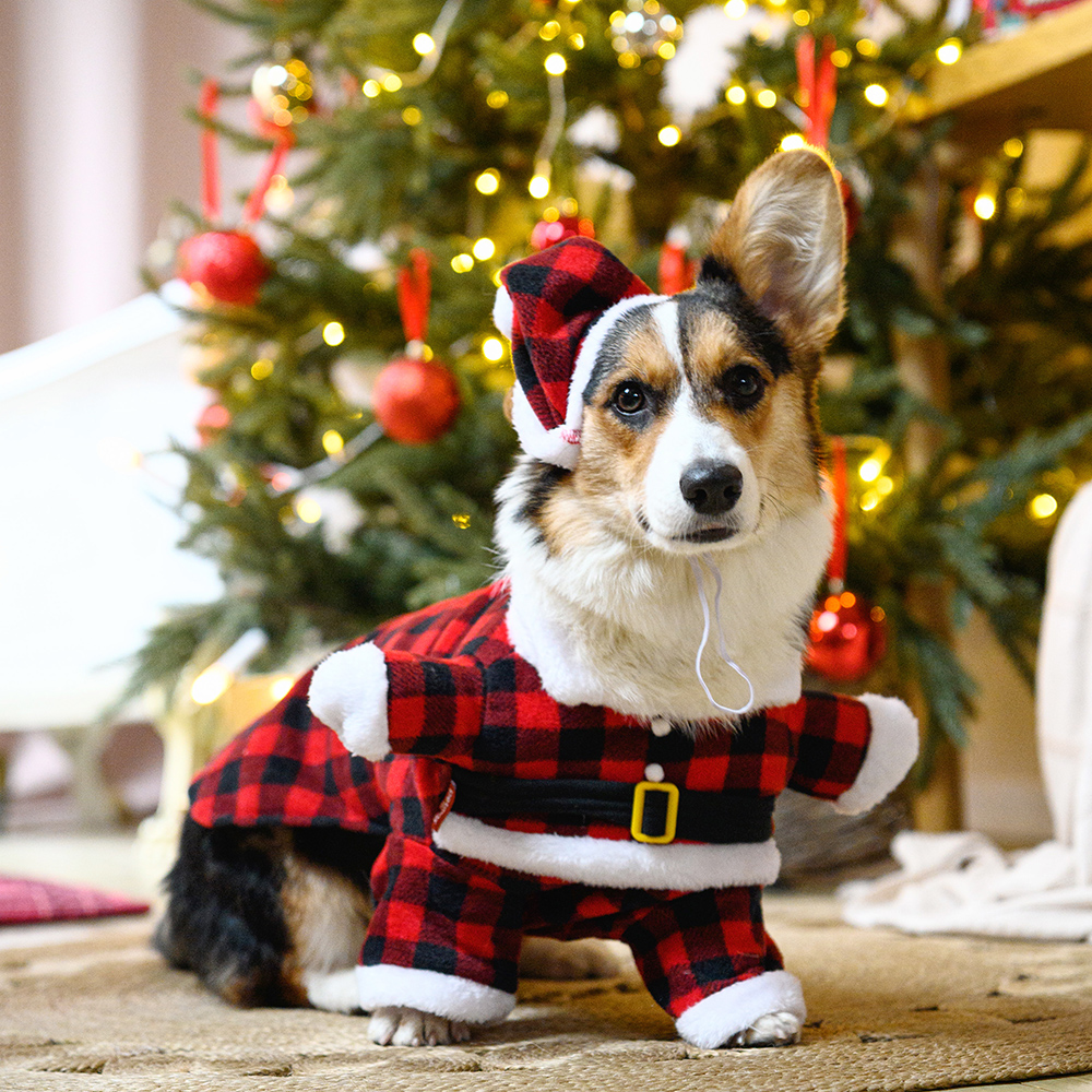 Petmax Костюм новогодний с колпаком Дед Мороз XS красная клетка