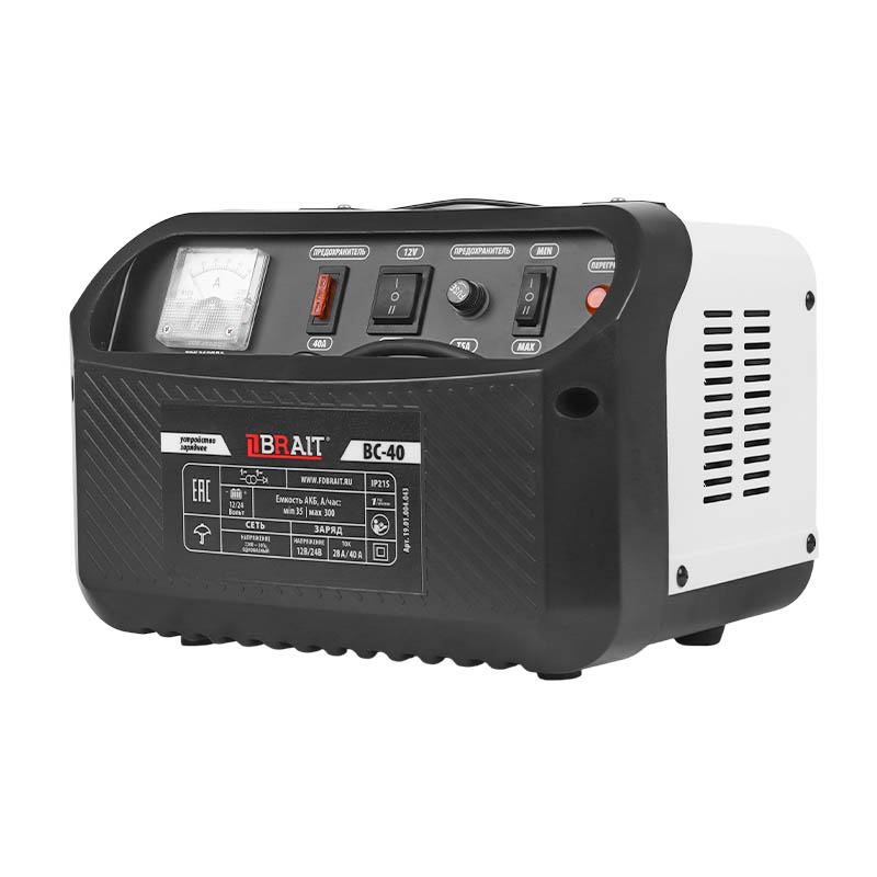 Устройство зарядное Brait BC-40 19.01.004.043 (напряжение 12/24В, емкость 35-300 А*ч, сеть 220В-50Гц, ток 28А/40А)