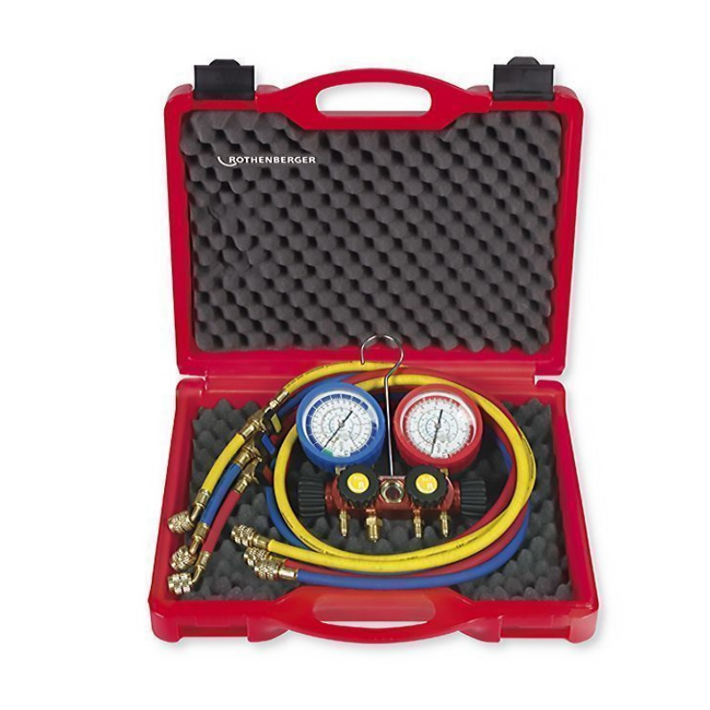 Малый набор ROTHENBERGER 170607, 2-позиции предназначенный для обслуживания кондиционеров и холодильных установок.Преимущества Комплект выполнен в удобном исполнении, позволяющем носить инструменты с собой, что удобно для выездных специалистов Небольшой размер и вес делают набор практичным для регулярного использования Манометрическая станция оснащена качественными датчиками, обеспечивающими точные показания давления. Это важно для правильной диагностики состояния системы охлаждения и предотвращения ошибок при обслуживании Набор специально разработан для современных климат-технологий