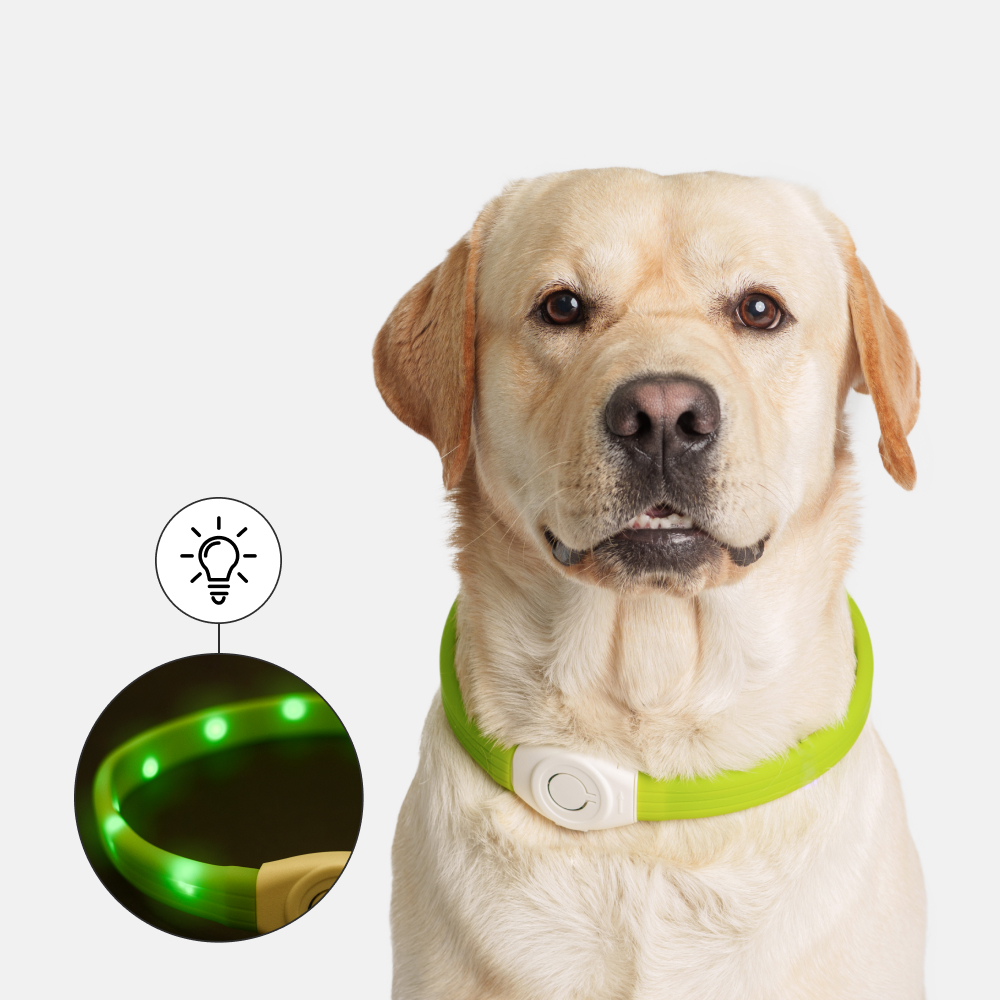 Rungo Ошейник светящийся широкий д/длинношерстных 65см салатовый силикон USB (размер: 65 см)