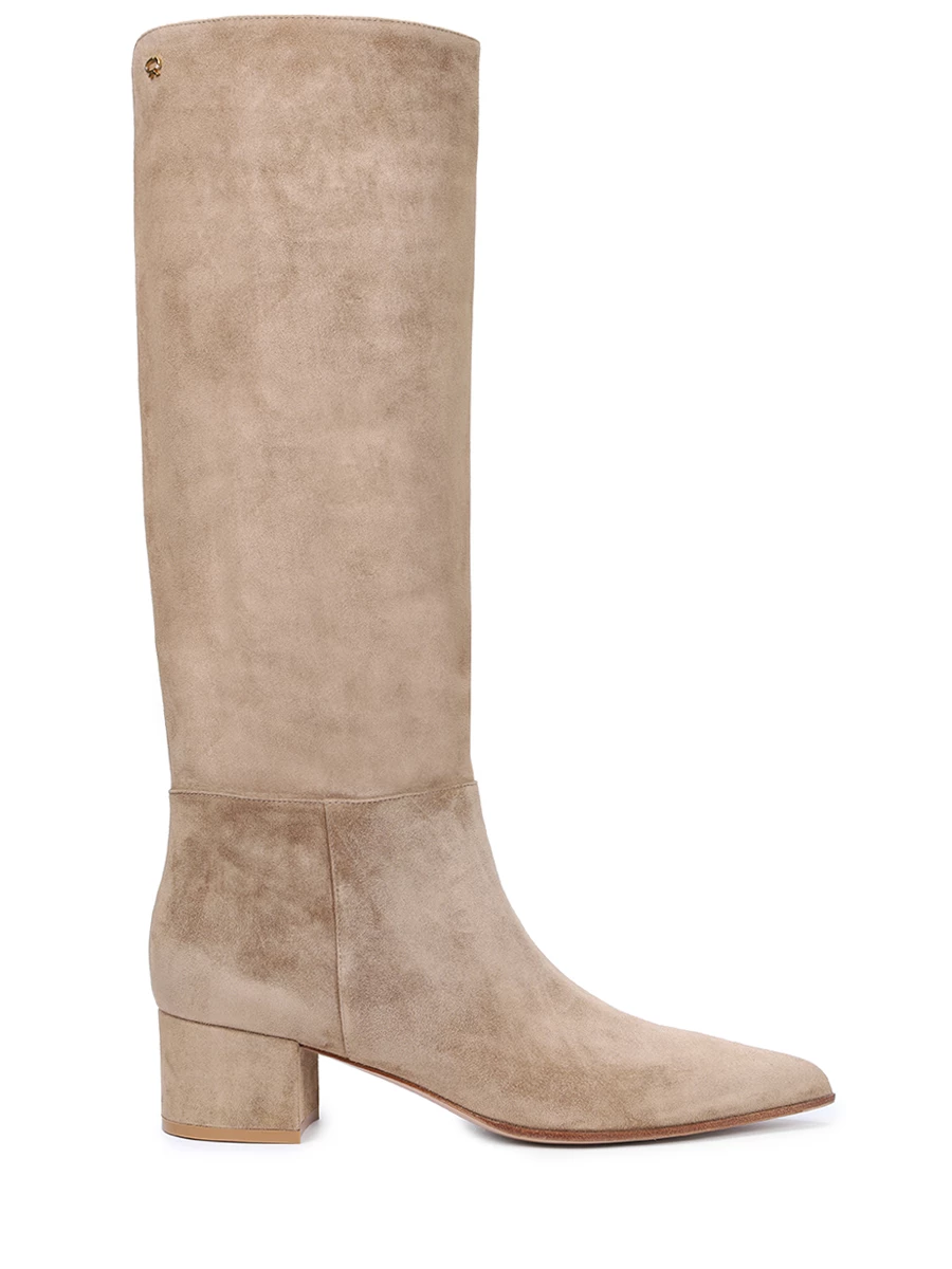 -Бежевые сапоги из бархатистой замши от GIANVITO ROSSI.
