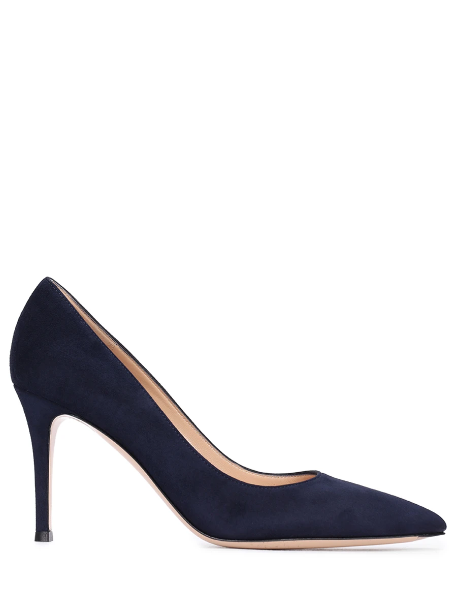 -Темно-синие туфли-лодочки из бархатистой замши от GIANVITO ROSSI.