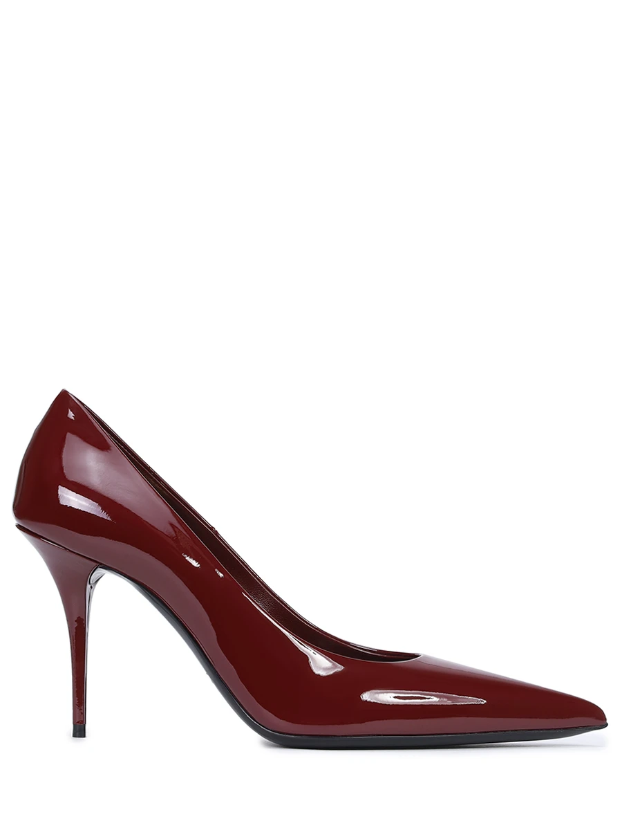 -Бордовые лакированные туфли-лодочки из натуральной кожи от SAINT LAURENT.