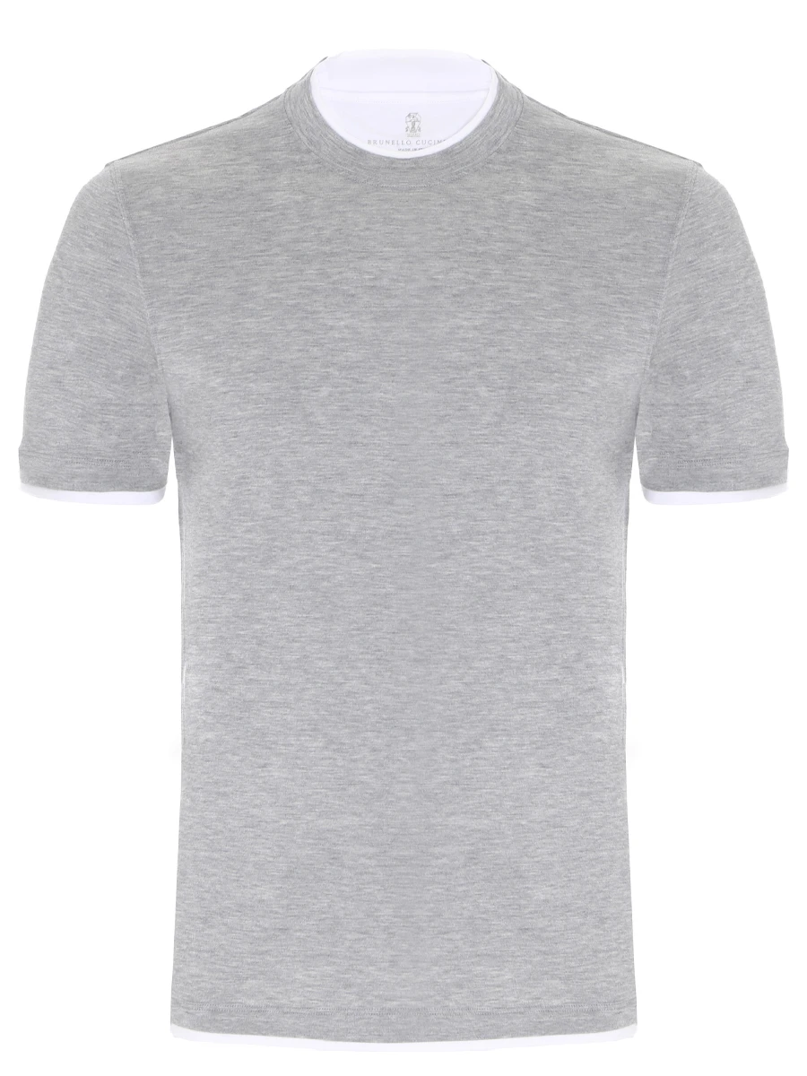 -Серая меланжевая футболка из смеси шелка и хлопка от BRUNELLO CUCINELLI.