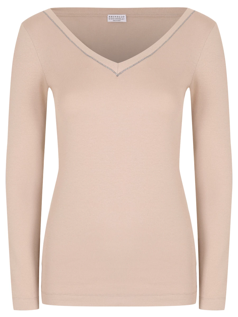 -Бежевый лонгслив из мягкого трикотажа на основе хлопка от BRUNELLO CUCINELLI.