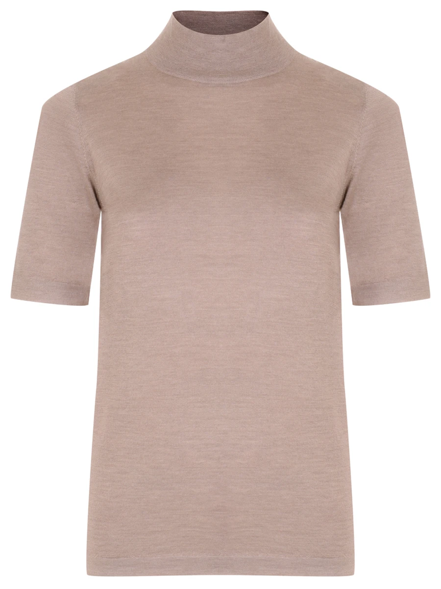 -Бежевая трикотажная футболка из тонкого смесового кашемира от BRUNELLO CUCINELLI.