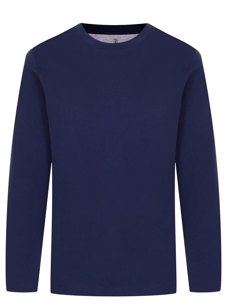 -Темно-синий лонгслив из мягкого хлопка от BRUNELLO CUCINELLI.