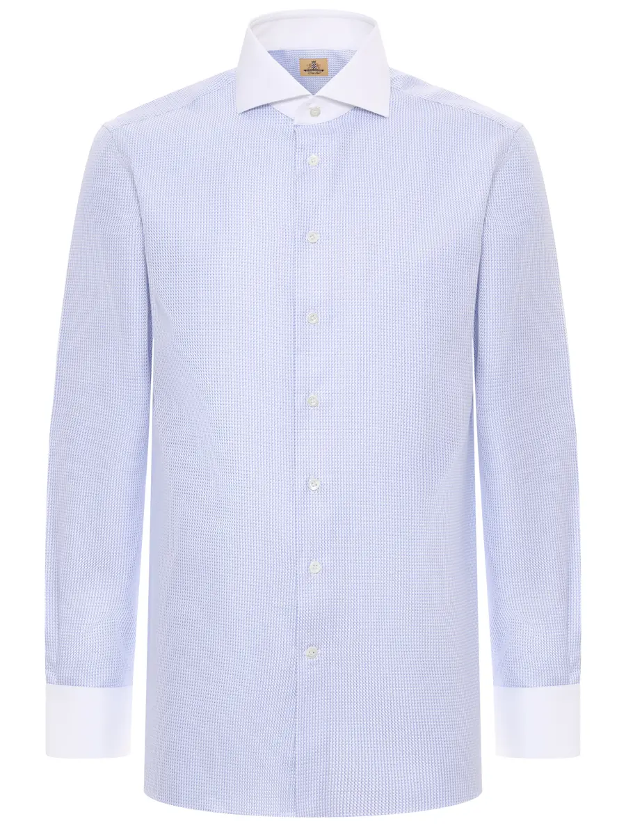 -Голубая в мелкую клетку рубашка из хлопка от SERGE LYON.