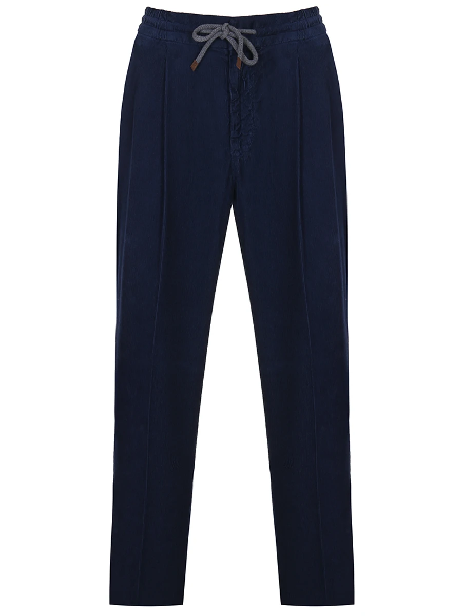 -Темно-синие брюки из мягкого фактурного вельвета на основе хлопка от BRUNELLO CUCINELLI.