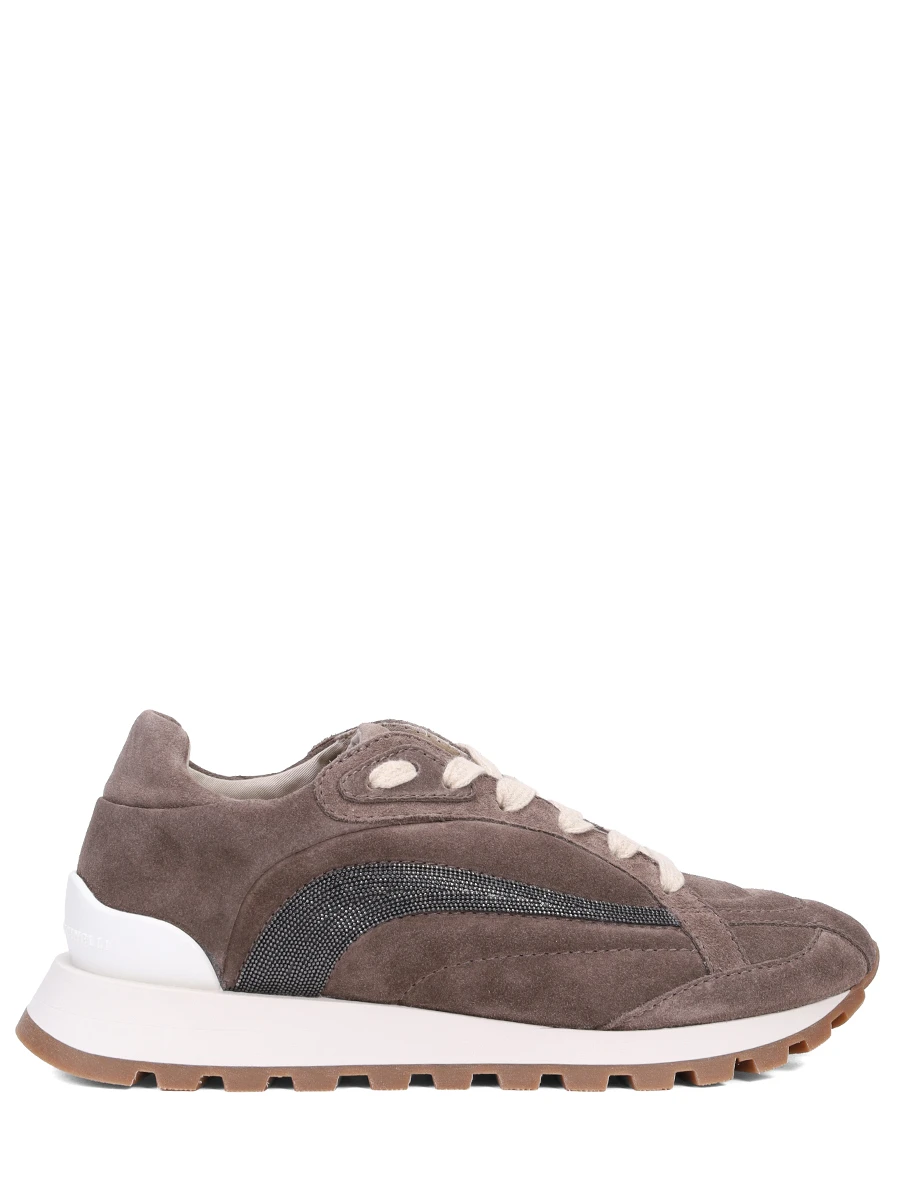 -Коричневые кроссовки из бархатистой замши от BRUNELLO CUCINELLI.