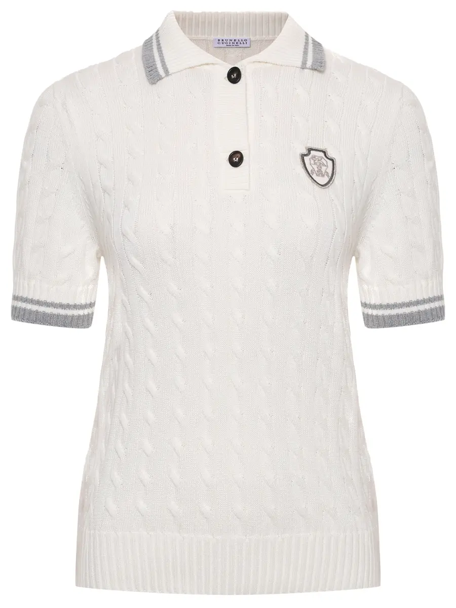 -Белое поло с арановым узором из мягкого хлопка от BRUNELLO CUCINELLI.