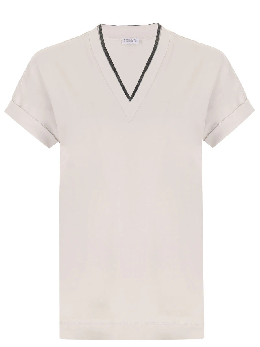 -Серая футболка из мягкого хлопка от BRUNELLO CUCINELLI.