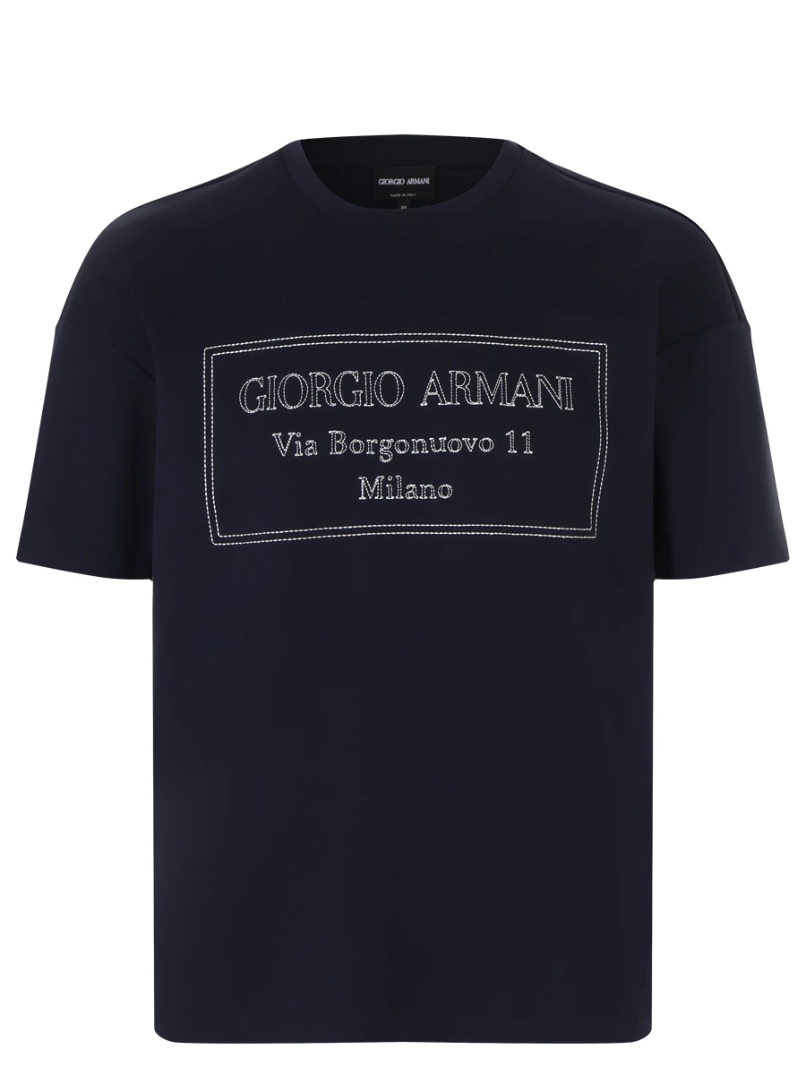 -Темно-синяя футболка из мягкого хлопка от GIORGIO ARMANI.