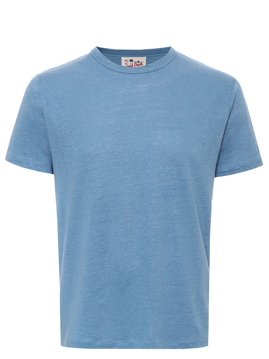 -Голубая футболка из легкого дышащего льна от MC2 SAINT BARTH.