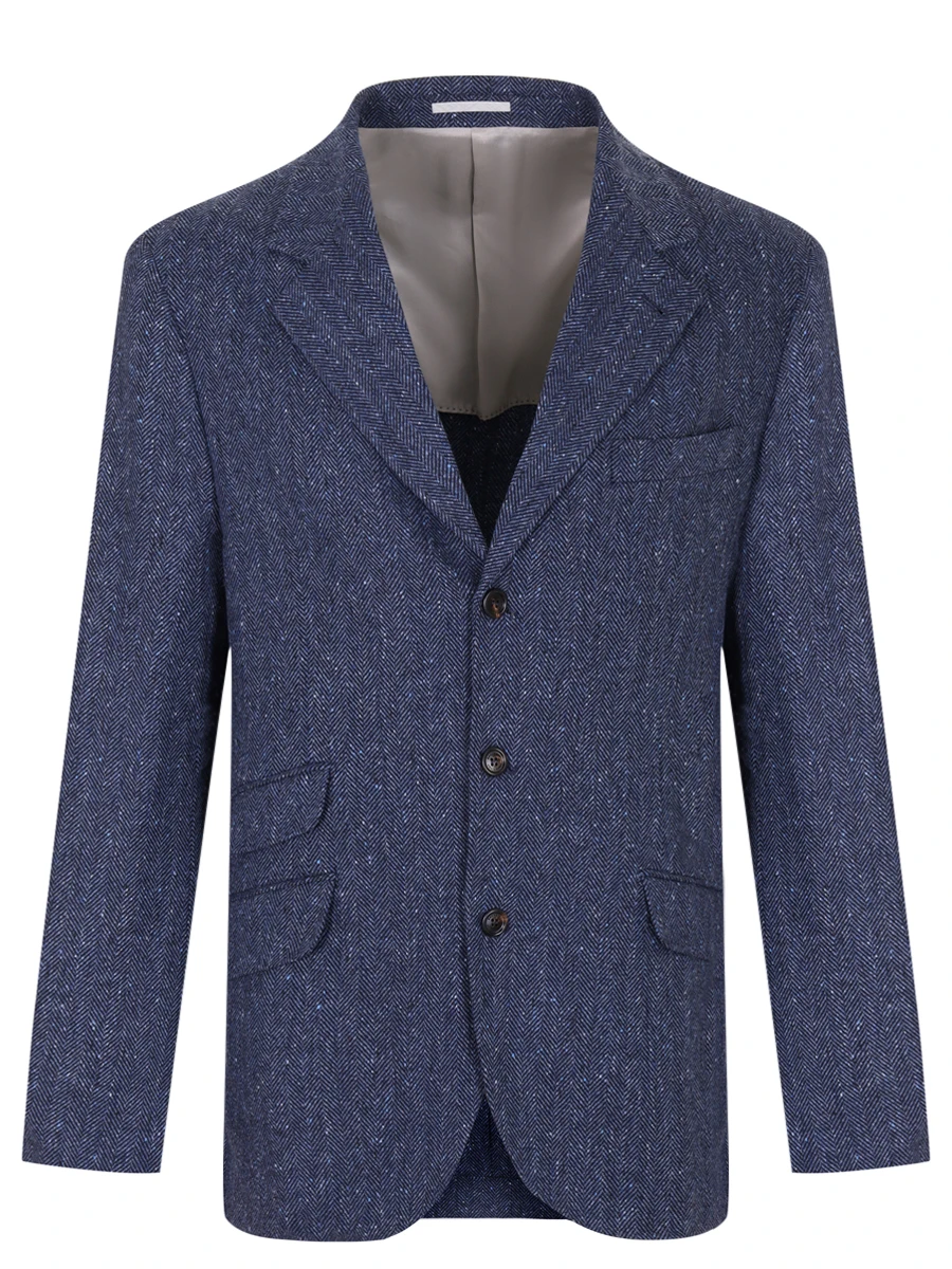 -Темно-синий пиджак из смесовой меланжевой шерсти от BRUNELLO CUCINELLI.