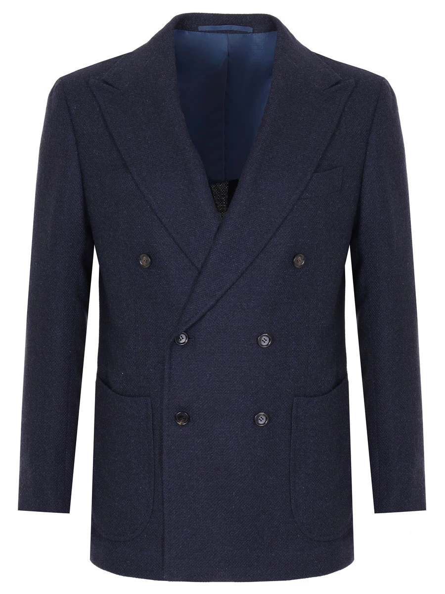 -Темно-синий пиджак из меланжевой смесовой шерсти от STILE LATINO.