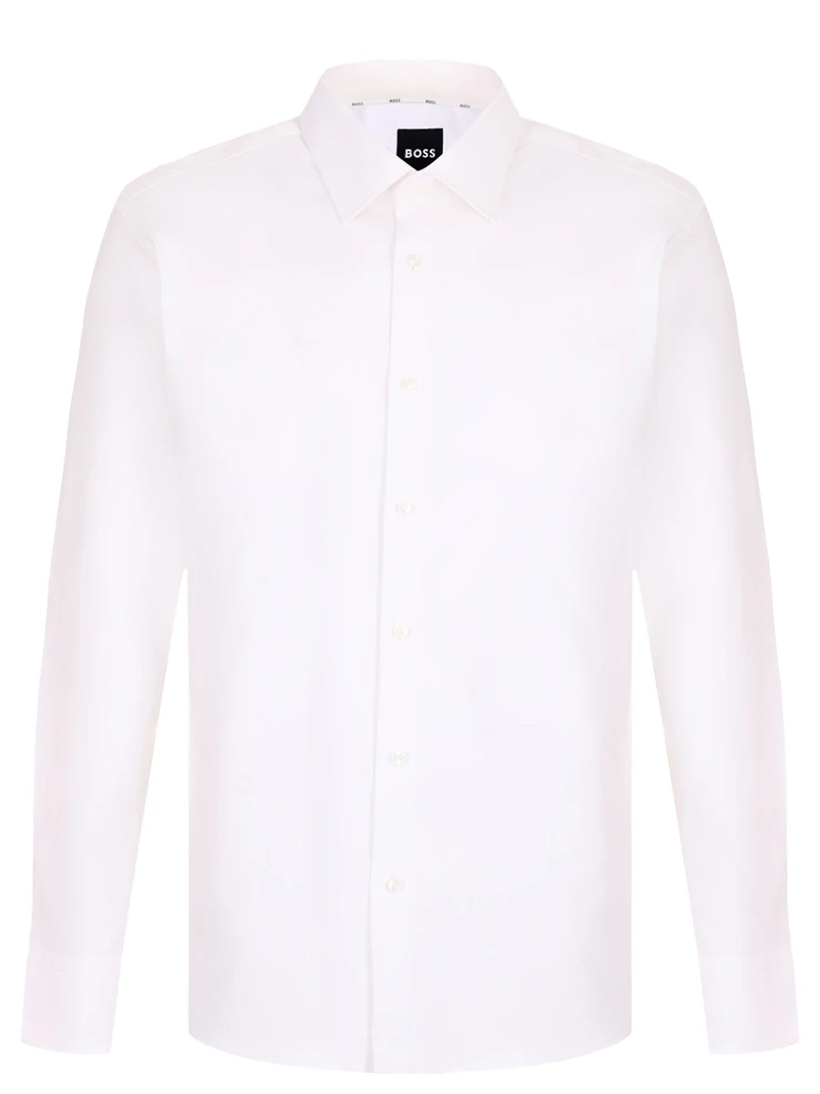 -Белая рубашка из стрейч-хлопка от BOSS BLACK.