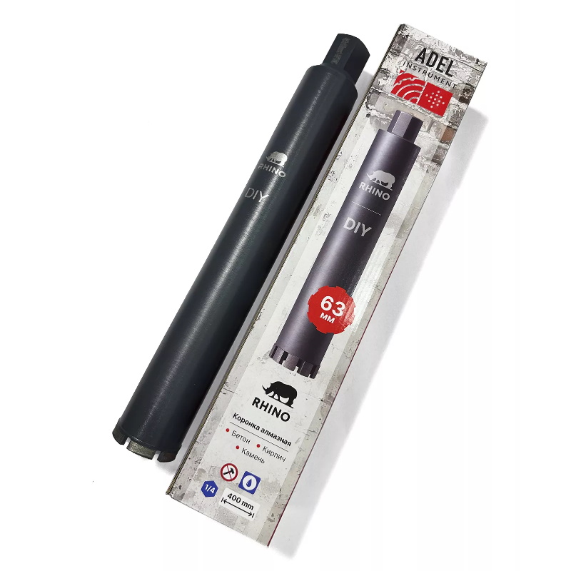 Коронка алмазная Adel Instrument Rhino AI-1105170201, Ø63, L-400мм, 1"1/4