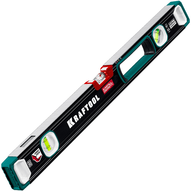 Уровень сверхпрочный Kraftool A-RATE CONTROL - это профессиональный литой уровень с инновационным глазком ACU-VIEW 4-в-1 и зеркальным глазком. Применяется для контроля горизонтальности и вертикальности поверхностей.Преимущества: Высочайшая точность 0.3 мм/м. ACU-VIEW инновационный горизонтальный глазок 4-в-1: 0%, 1%, 2%, 3% с эффектом увеличения без боковых граней обеспечивает превосходную видимость в любом положении. Измерения в перевернутом положении с точностью 0.7 мм/м. 3 высокоточных глазка с гарантией 100 лет. Зеркальный глазок упрощает измерения вертикальных поверхностей. 2 фрезерованных базовых поверхностей. Сверхпрочный утолщенный профиль X-HD из авиационного алюминия. Эластичные заглушки поглощают удар при падении и снимаются для измерения в торец. Большие удобные рукоятки Глазки из ударопрочного акрила.
