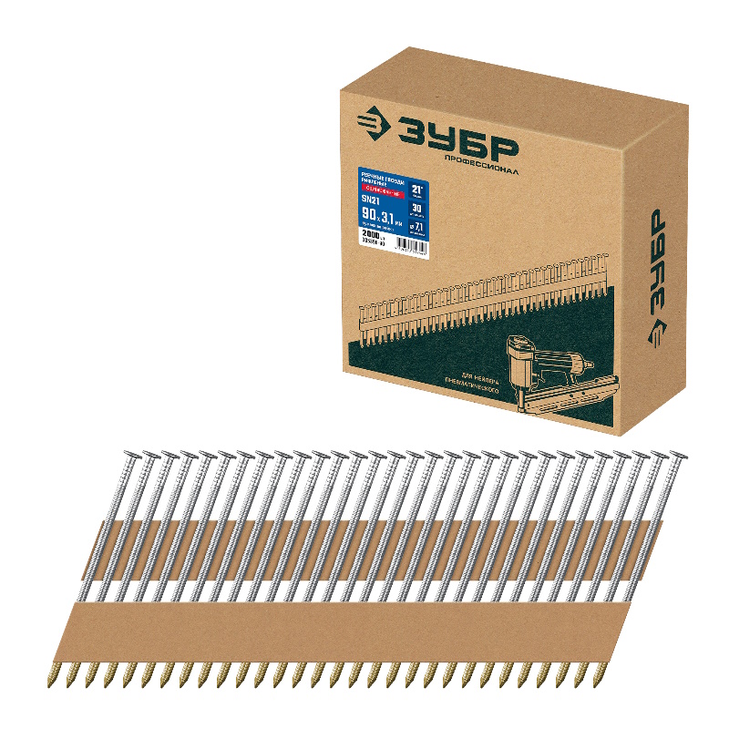 Реечные гвозди Зубр SN21 предназначены для сборки деревянных конструкций, крепления тонколистового металла до 0.9 мм. В каркасном домостроении используются для сборки каркаса дома и установки черновых полов. Монтаж производится при помощи гвоздезабивного пистолета (нейлера), рассчитанного на работу с гвоздями в кассетах с углом наклона 21 град. Во избежание повреждения кассеты на бумажной основе при установке в магазин нейлера не допускайте сильных ударов толкателя по кассете с гвоздямиПреимущества Кольцевая накатка и рифленая поверхность гвоздей обеспечивают повышенную прочность конструкции Быстрый монтаж: гвоздь забивается при помощи гвоздезабивного пистолета (нейлера)
