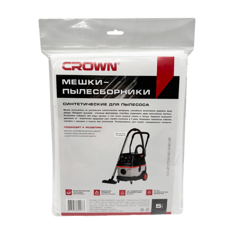 Мешки синтетические Crown , для пылесоса Crown CT42032, 5 шт., верхние CASVCB42032U5