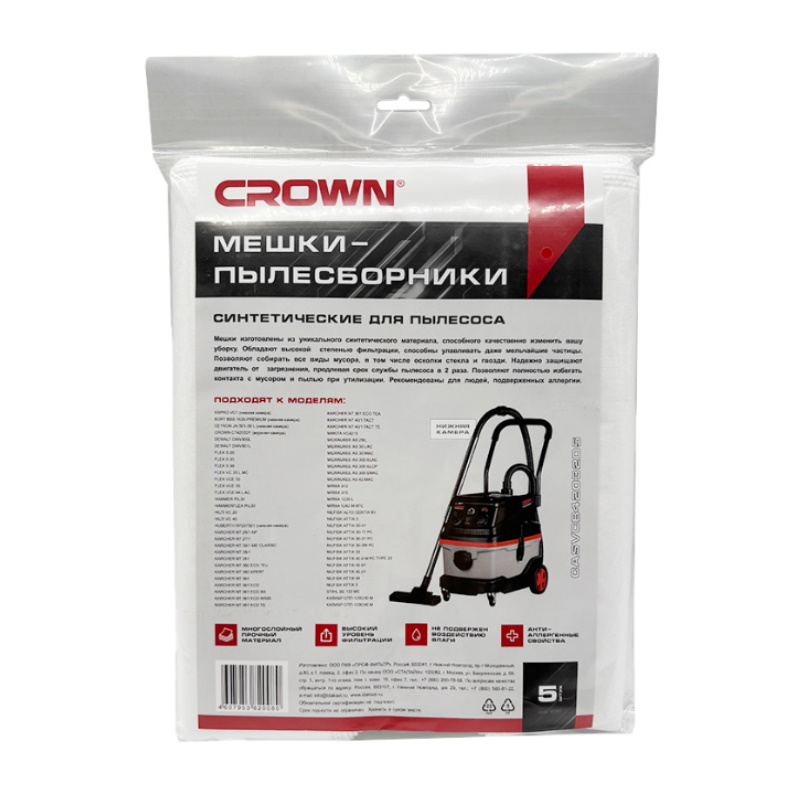 Мешки синтетические Crown , для пылесоса Crown CT42032, 5 шт., нижние CASVCB42032D5