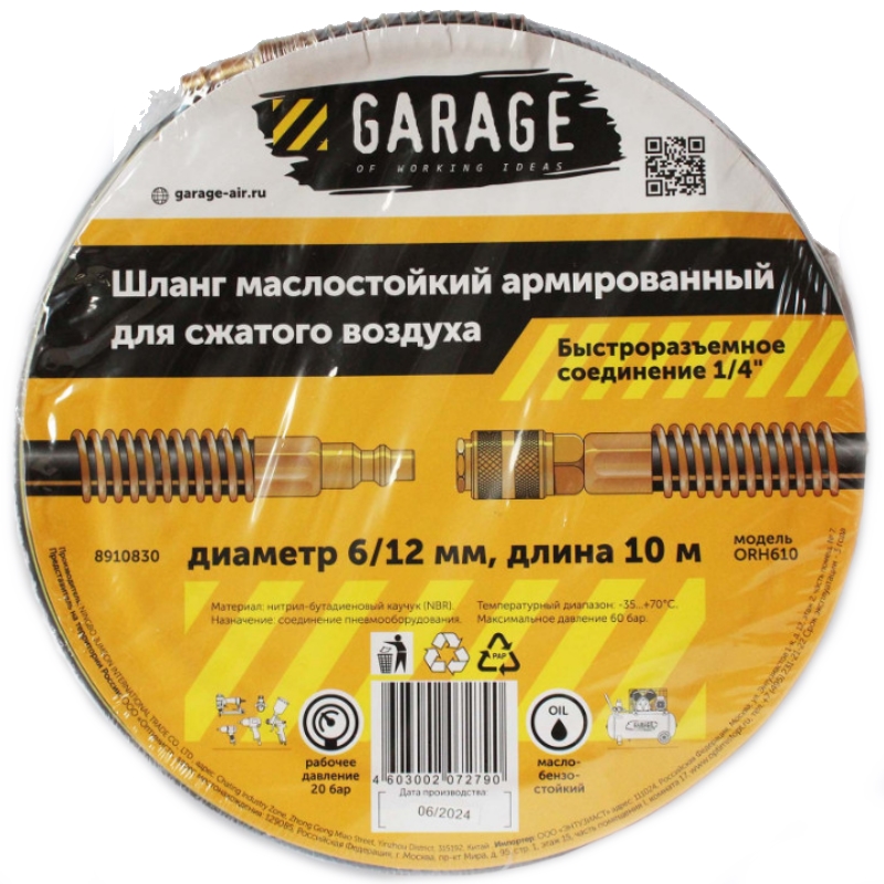 Шланг армированный маслостойкий Garage , 6/12 мм, 10 м 8910830