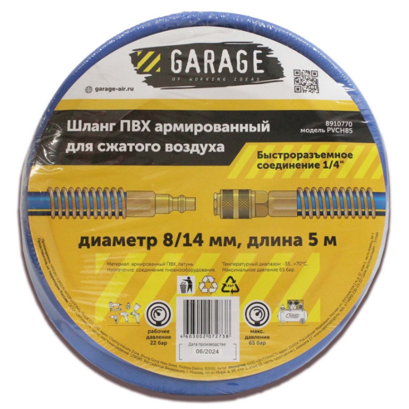 Шланг ПВХ армированный Garage , 8/14 мм, 5 м 8910770