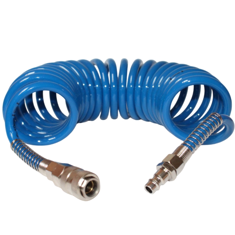Шланг полиуретановый спиральный Garage , размер 6.5/10 мм, длина 15 м, изготовлен из полиуретанаПреимущества Высокая прочность и устойчивость к износу благодаря полиуретановому материалу Хорошая гибкость и устойчивость к деформации при изгибах Спиральная конструкция обеспечивает удобство хранения и исключает перекручивание Высокое максимальное рабочее давление (15 бар) позволяет использовать шланг с мощным пневматическим оборудованием Быстроразъемные переходники упрощают подключение и отключение Легкий вес и компактные размеры способствуют удобству эксплуатации