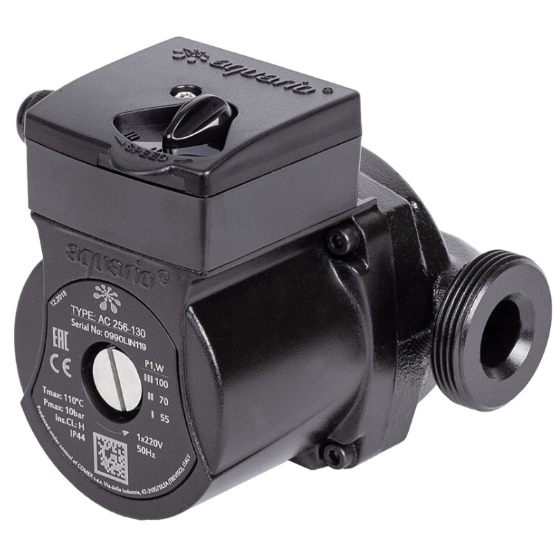 Насос циркуляционный Aquario 5256 предназначен для использования в системах отопления.Преимущества Исполнение без механического уплотнения вала. Во время эксплуатации ротор двигателя и подшипники смазываются и охлаждаются перекачиваемой жидкостью Три режима мощности (55-70-100 Вт) позволяют выбрать оптимальный режим работы, что существенно снижает потребление электроэнергии при сохранении высокой производительности Корпус выполнен из прочного чугуна, рабочее колесо изготовлено из технополимера, вал и подшипники — из металлокерамики, а гильза статора — из нержавеющей стали, что гарантирует длительный срок службы устройства