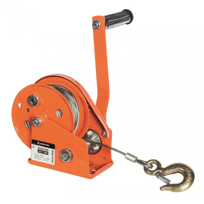 Лебедка барабанная ручная Сибталь 13801, 0,5 т, 20 м BHW