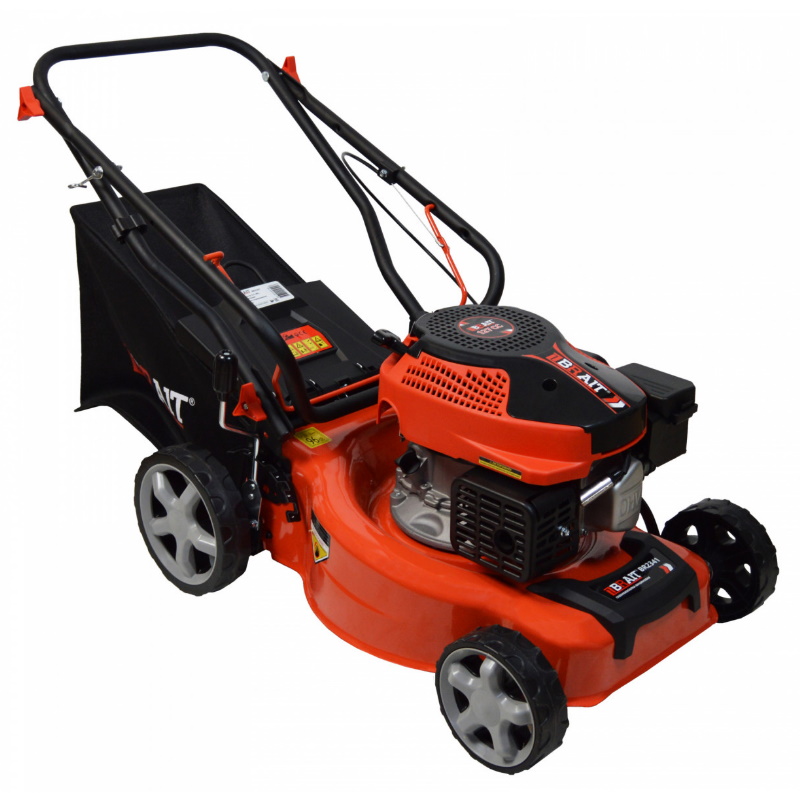 Газонокосилка бензиновая BRAIT - незаменимый помощник на участке загородного дома.Преимущества Масляный щуп. Предназначен для измерения уровня бензина Вместительный травосборник. Травосборник объемом 40 литров увеличивает продолжительность рабочего цикла Хранение и транспортировка. Складная рукоятка упрощает хранение и транспортировку бензиновой газонокосилки Мощный бензиновый двигатель Функции - сбор, задний выброс Большие задние колеса - маневренность Складная рукоятка обеспечивает компактность при хранении и перевозке косилки Семь ступени высоты скашивания в диапазоне 25-75 мм