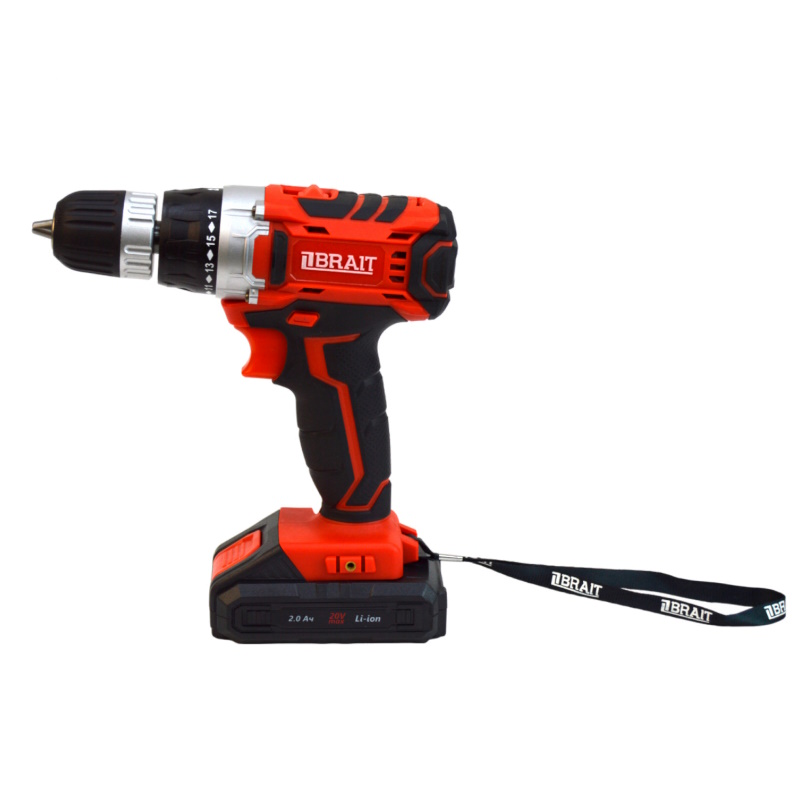 Дрель аккумуляторная Brait 21.01.082.070, 18В Li-on, 2 АКБ, 2Ач, 2 скорости, 30Нм, индикатор заряда батареи BCD20S