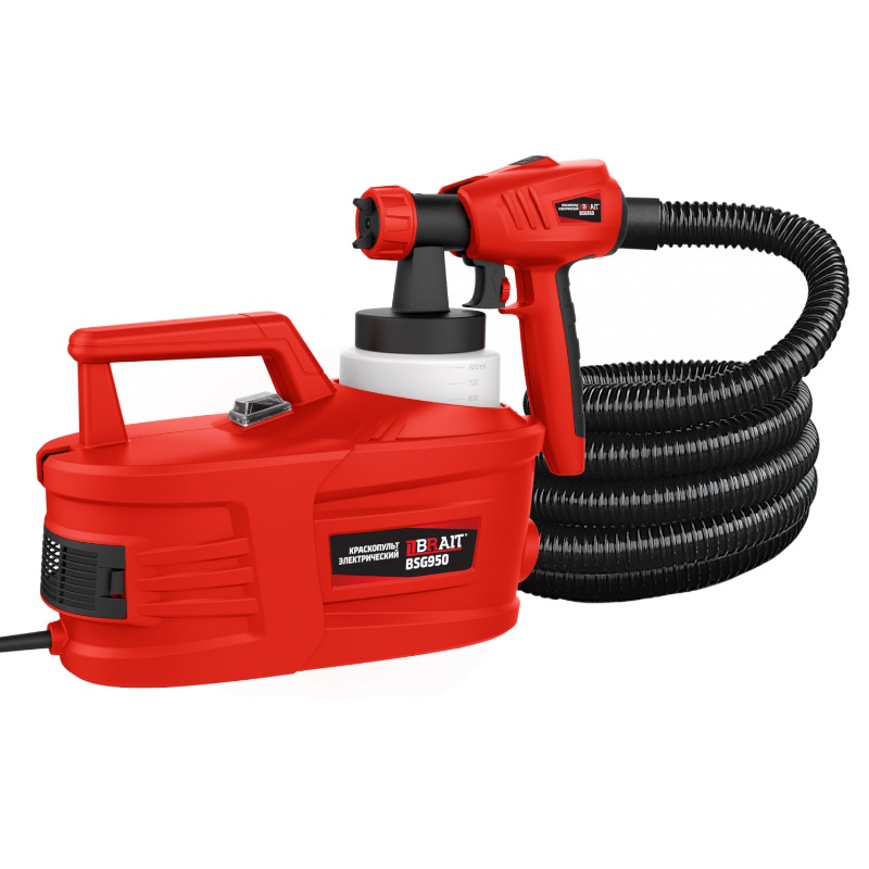 Краскопульт электрический Brait 21.01.195.069 (950 Вт, бачок 800 мл, производительность 1500 мл/мин) BSG-950