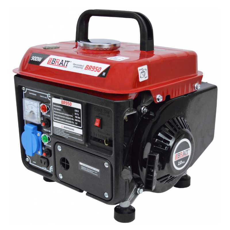 Генератор бензиновый Brait 02.01.052.047, 0.7/0.9 кВт, 220В, 50 Гц, ручной запуск BR 950