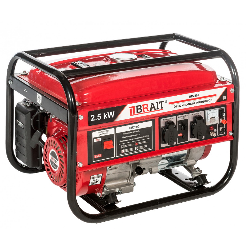Генератор бензиновый BRAIT BR-2500_047 – подходящий вариант для тех, кто ищет однофазную модель для аварийного снабжения электричеством в ситуациях отсутствия электросети. Его часто приобретают для строительных и ремонтных площадок, загородных домов, дач, коттеджей, личного хозяйства, социальных объектов и т.д. К этому бензиновому генератору можно подключать мощные бытовые электроприборы и различное хозяйственное оборудование.Преимущества Его номинальная мощность составляет 2000 ватт, при этом агрегат производит качественное электричество 220 В BR-2500 оснащен четырехтактным бензиновым двигателем, работающем на АИ-92 бензине Он обладает мощностью 5,5 л.с. и имеет воздушное охлаждение Емкость бака для топлива -15 л Алюминиевая обмотка увеличивает срок службы генератора. контролировать напряжение можно посредством простого вольтметра, находящегося на передней панели корпуса Генератор бензиновый BRAIT BR-2500 легко запускается в работу стандартным ручным стартером. Конструкция корпуса агрегата имеет надежную раму из прочных металлических труб. Это обеспечивает надежную защиту генератора Компактные размеры и небольшой вес облегчают транспортировку и перемещение бензинового генератора, делают его положение устойчивым на любой местности