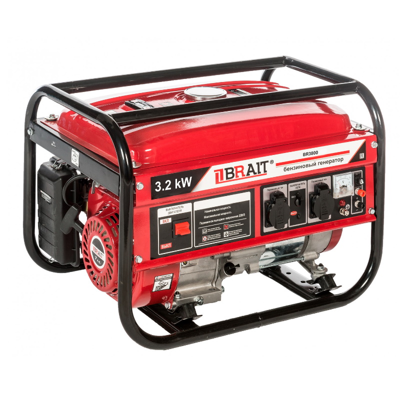 Генератор бензиновый Brait 02.01.054.029, 2,9/3,2 кВт, 220В, 50 Гц, 12В, 1-цилиндр, 4-тактный, 7 л.с, 15 л, масло картера 0,6 л BR3800