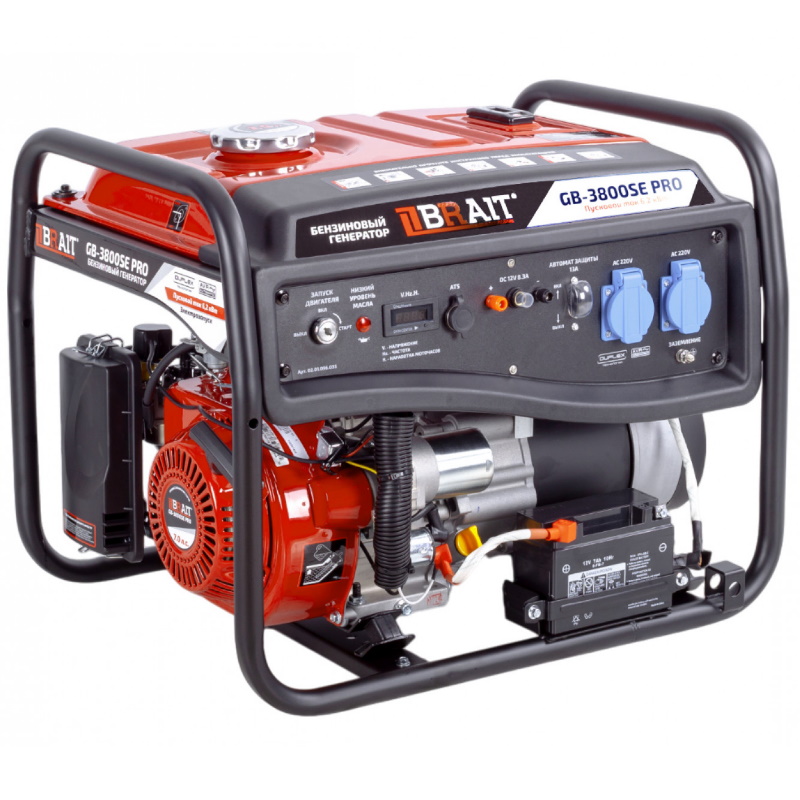 Генератор бензиновый Brait 02.01.096.035, 2,8/3,1, электрозапуск, функция DUPLEX (пусковой ток), 6 кВт, 220В GB-3800SE PRO